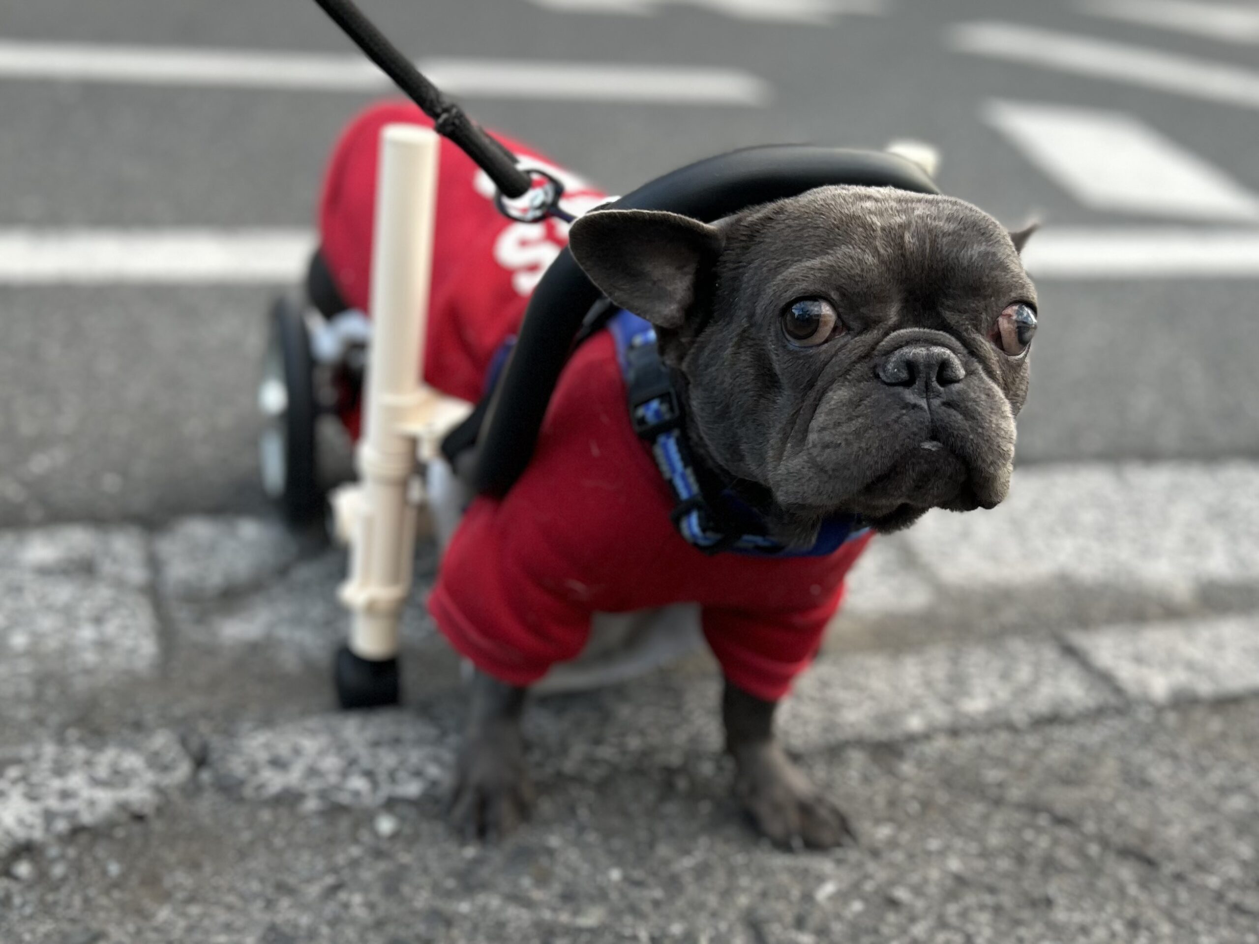 フレンチブルドッグさんということもあり、なかなか良いサイズの車いすと巡り合うことが難しいですが、