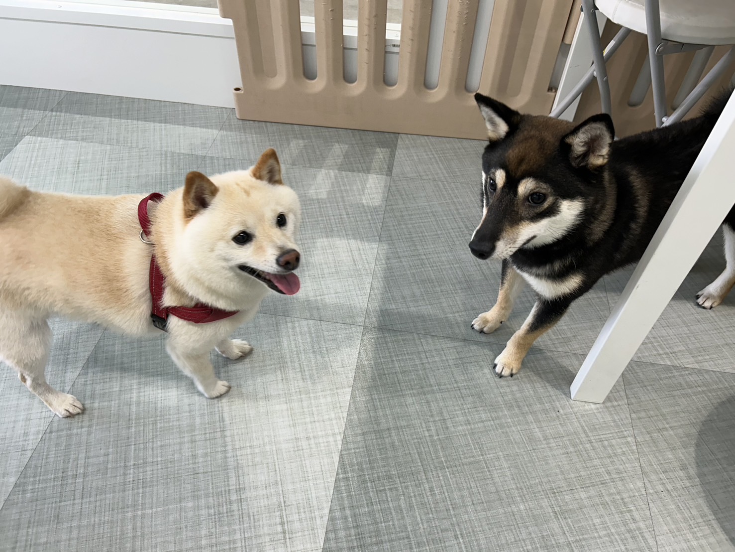 白柴の小太郎くん、同じ柴犬のまめこちゃんを独特なステップで遊びに誘っています😊 黒柴のまめこちゃんも負けじとやんのかステップです✨ 他のワンちゃんのこと怖がってしまうなどお悩みあ[...]