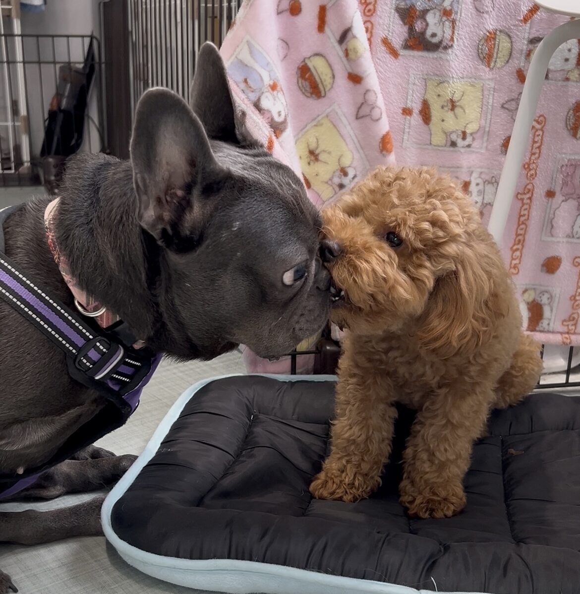 トイプードルのエレェくんと遊びたいフレンチブルドックのサンちゃん😂 サンちゃんは椎間板ヘルニアの後遺症で後肢を引きずって歩きますが とっても活発で走りもはやい子です🎵 エレェはまだ1歳になった[...]