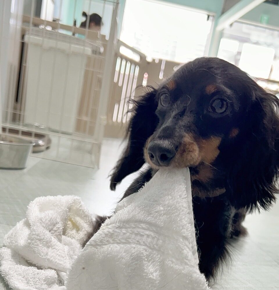 最近ボランティア様やお客様の靴紐を引っ張ってほどくのがブームのシャネル😂 よだれでベトベトにしてしまうので、ハンカチタオルを渡したところ 短いあんよで大事そうにホー[...]