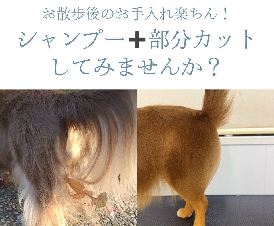 この時期、お散歩に行った後 愛犬の尻尾やお尻の毛、足先に 枯葉や落ち葉などのお土産が付いていませんか🍂? シャンプーの際に 気になる部分もカット✂✨ ご自宅での愛犬のお手入れもしやすくなります[...]