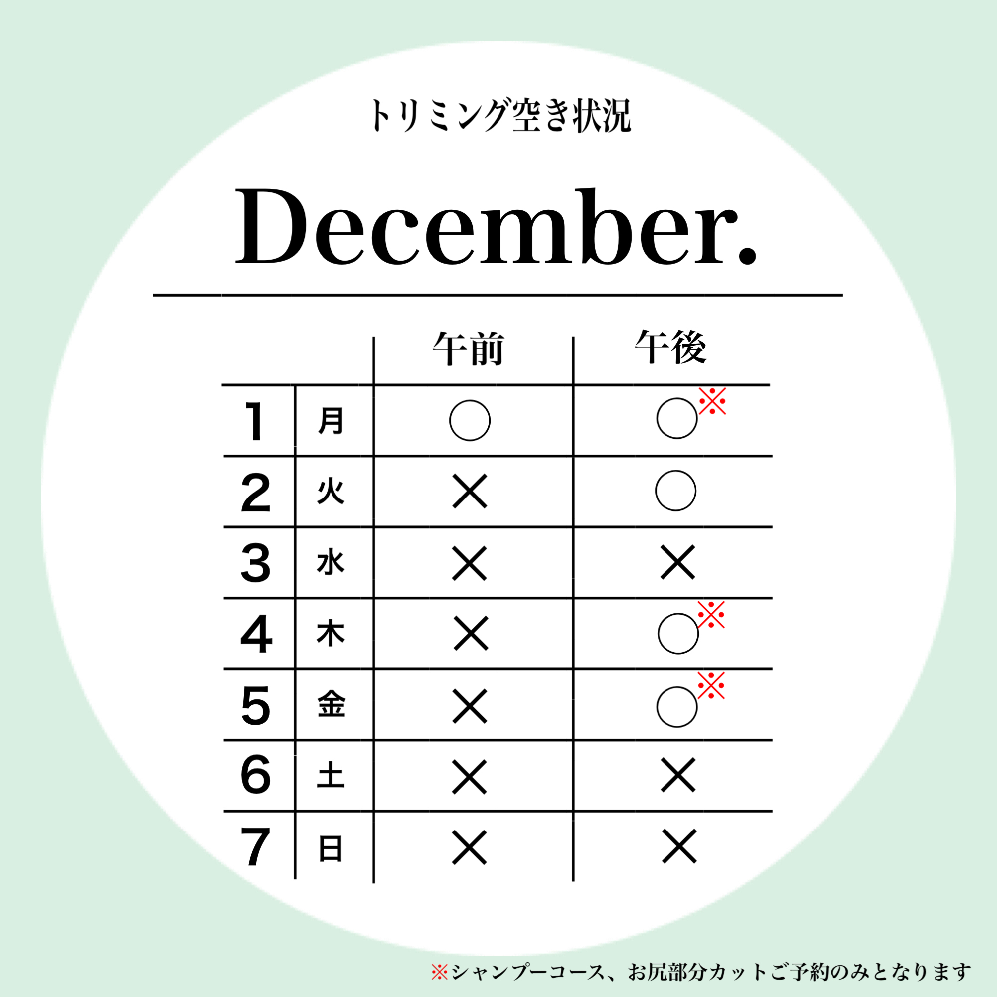 petfelice浦和与野店の12月1週目のトリミング空き状況✨