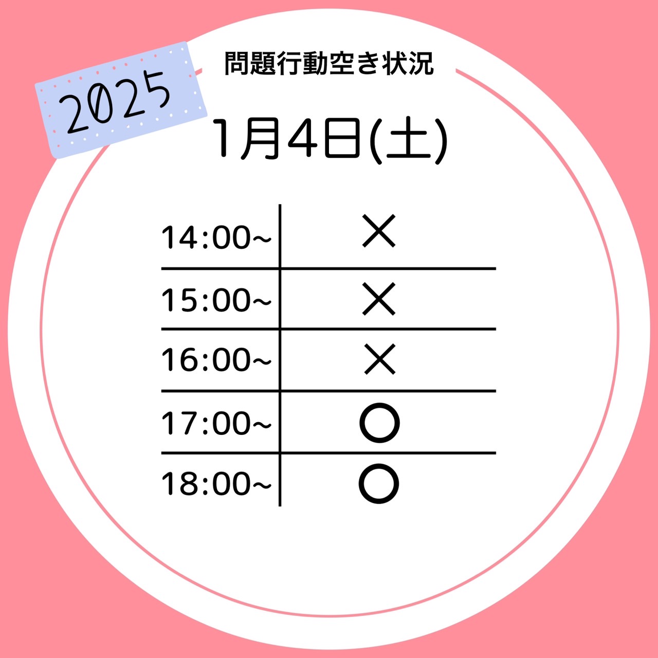 1月4日(土)、12日(日)問題行動トレーニングの空き状況です!
