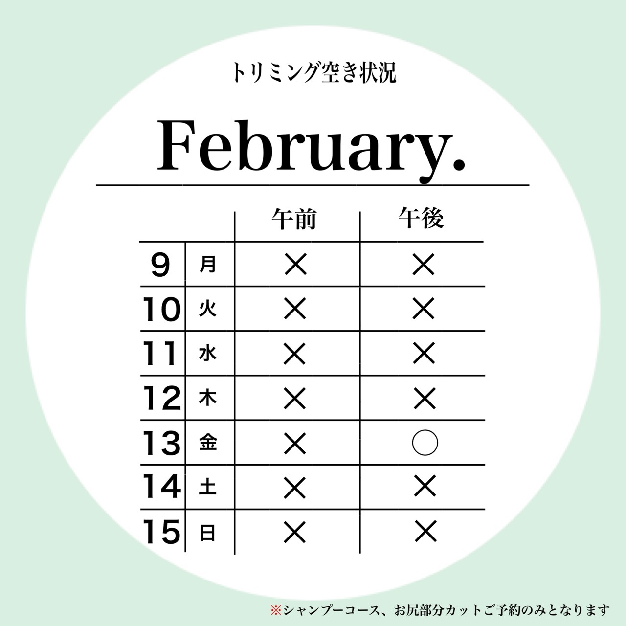 petfelice浦和与野店の2月2週目のトリミング空き状況になります!
