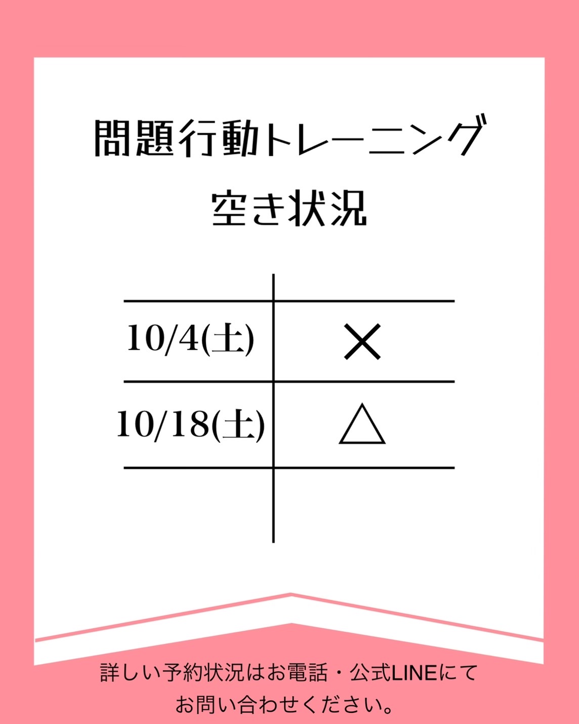10月4日(土)、18日(土)の、問題行動トレーニングの空き状況になります!